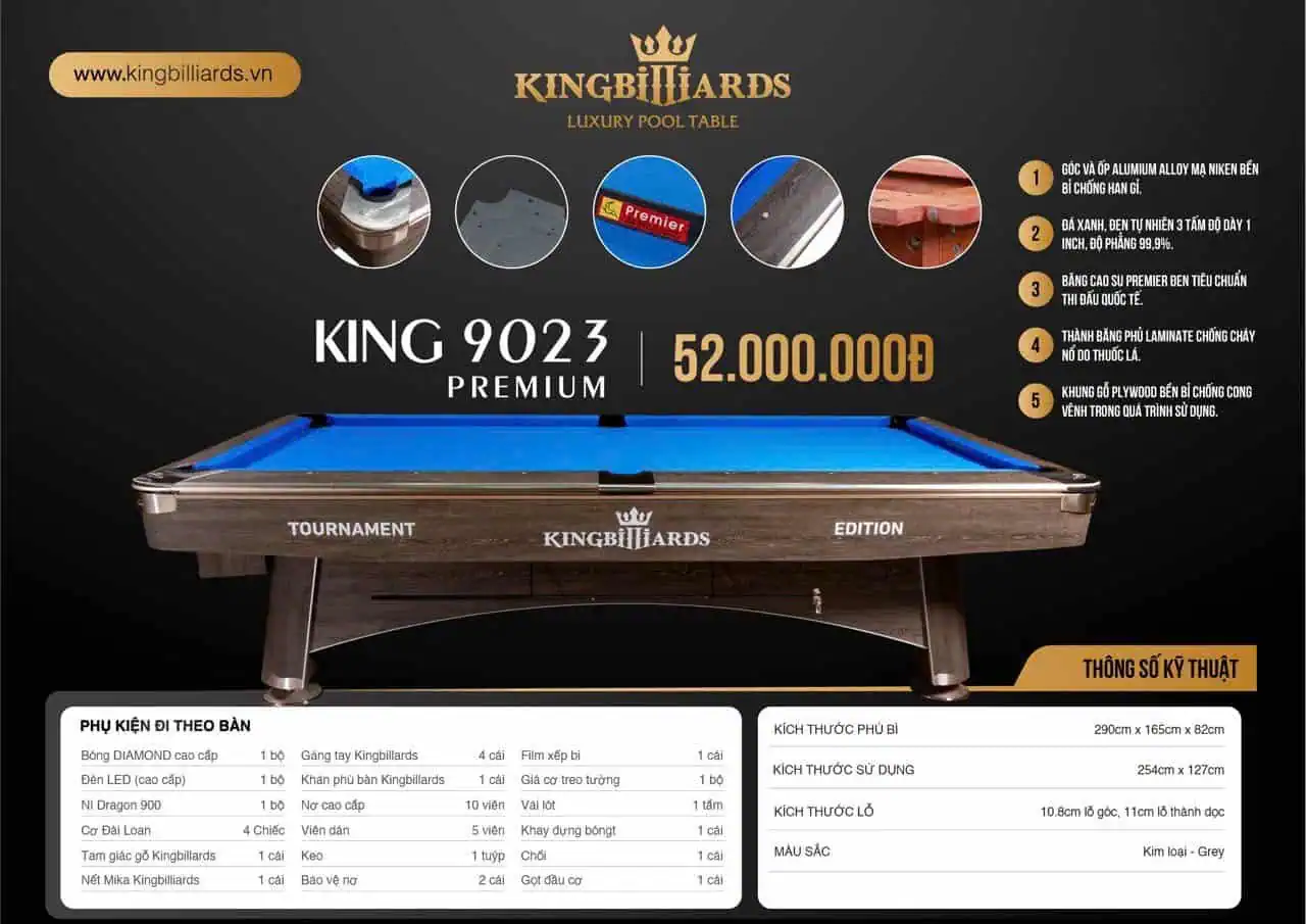 THÔNG SỐ KỸ THUẬT BÀN BI A KINGBILLIARDS PREMIUM 9023