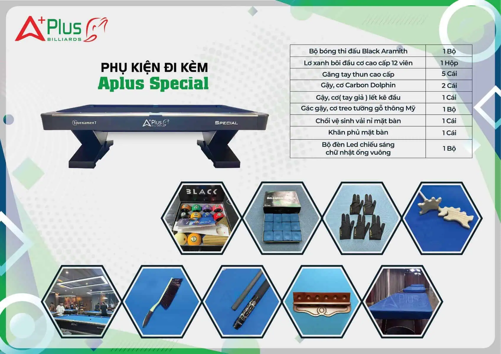 Sản phẩm mới nhất ra trong năm 2023. Phiên bản cao cấp được ra mắt trong năm 2023, sở hữu rất nhiều công nghệ mới mang lại cho khách hàng dòng sản phẩm cao cấp đúng theo tên của sản phẩm Aplus Special. Bóng theo bàn được hãng cung cấp là Aramith Black dòng bóng cao cấp sử dụng tại các giải đấu lớn trên Thế Giới.