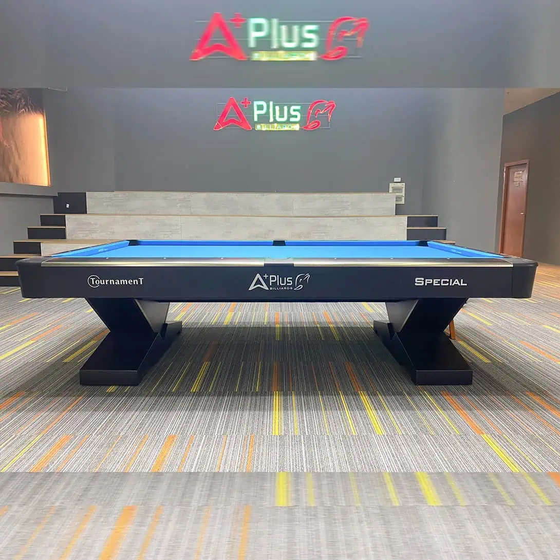 Dòng bàn cao cấp nhất của hãng Aplus Billiards – Được nâng cấp rất nhiều so với các sản phẩm trước đó: từ thiết kế, chi tiết bên trong bàn hay phụ kiện. Bóng theo bàn được hãng cung cấp là Aramith Black dòng bóng cao cấp sử dụng tại các giải đấu lớn trên Thế Giới.