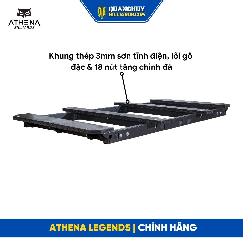 Athena là thương hiệu bàn bida nổi bật với thiết kế hiện đại, kết cấu chắc chắn đạt tiêu chuẩn thi đấu quốc tế.