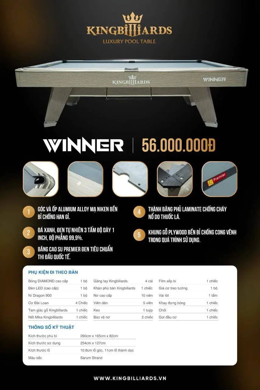 Mọi chi tiết của KING WINNER được thiết kế với kiểu dáng đẹp – tinh tế, phù hợp với mọi đối tượng từ CLB billiards đến hộ gia đình.