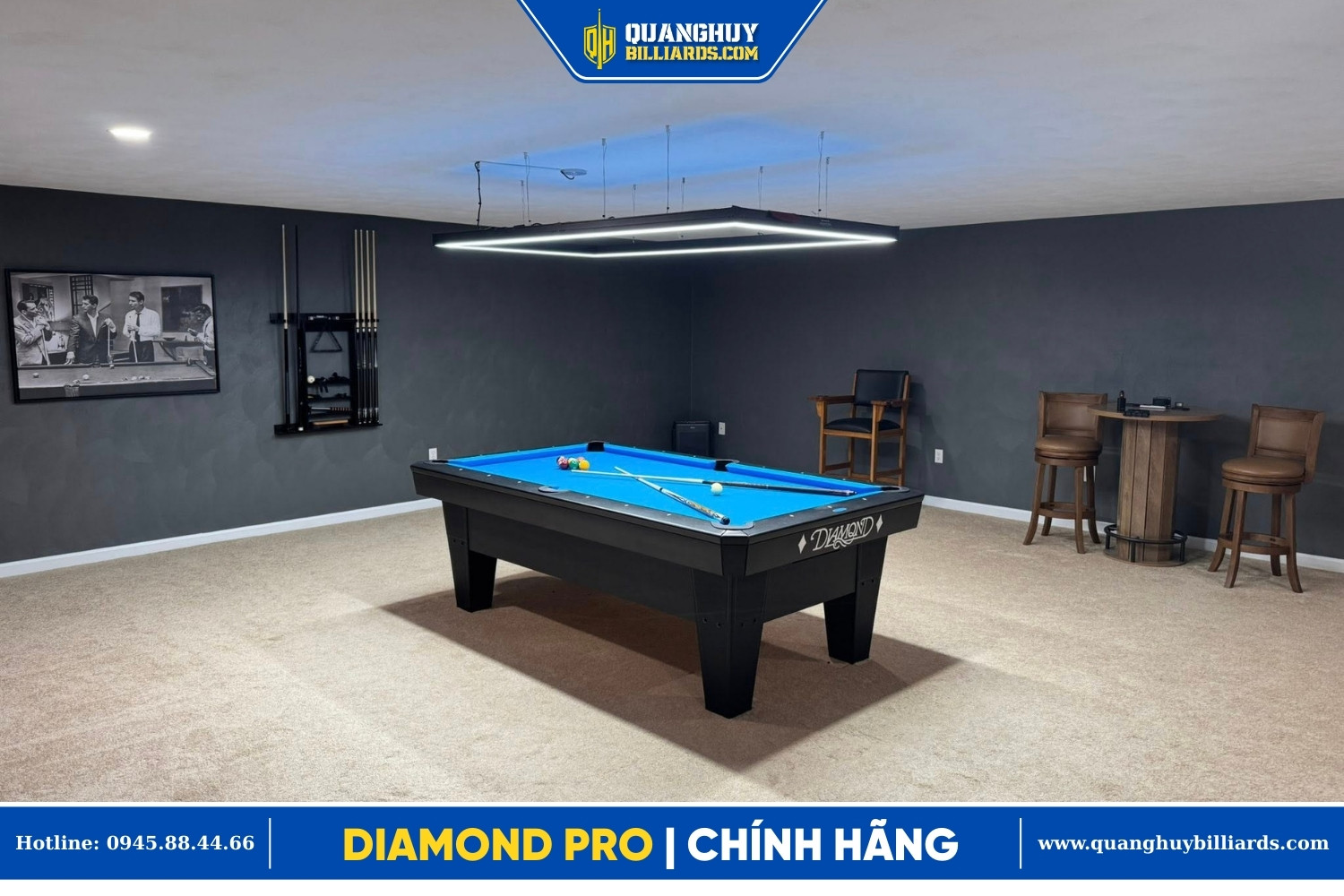Bàn của Diamond được thiết kế với chất lượng rất cao — vật liệu, gia công và hoàn thiện đều đạt tiêu chuẩn khắt khe để phù hợp với giải đấu quốc tế, phòng pool chuyên nghiệp hay câu lạc bộ cao cấp.