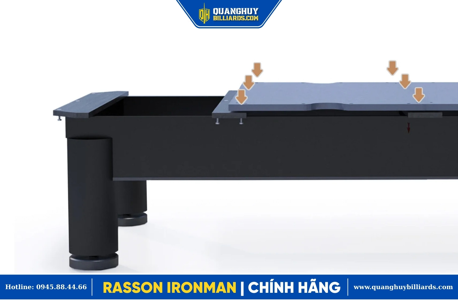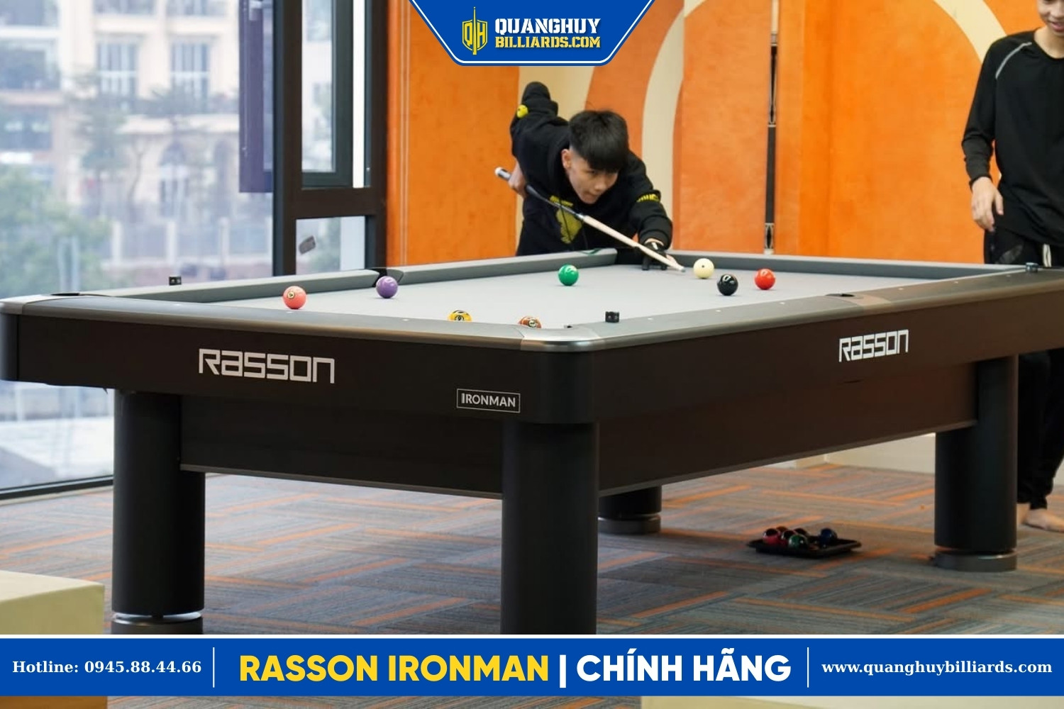 Đúng như tên gọi “Người sắt”, Rasson Ironman là dòng bàn bida pool chuyên nghiệp được thiết kế để chịu đựng cường độ khai thác cao tại các CLB. Với khung gầm thép vững chắc và hệ thống chân đế mạnh mẽ, Ironman đảm bảo sự ổn định tuyệt đối, không rung lắc trong suốt quá trình thi đấu.