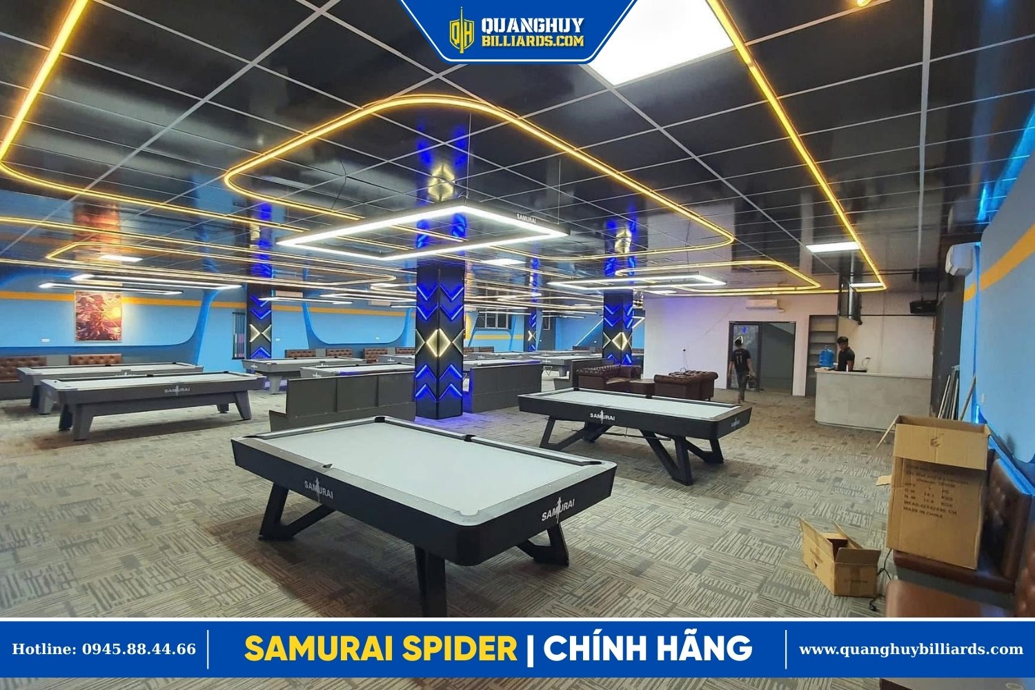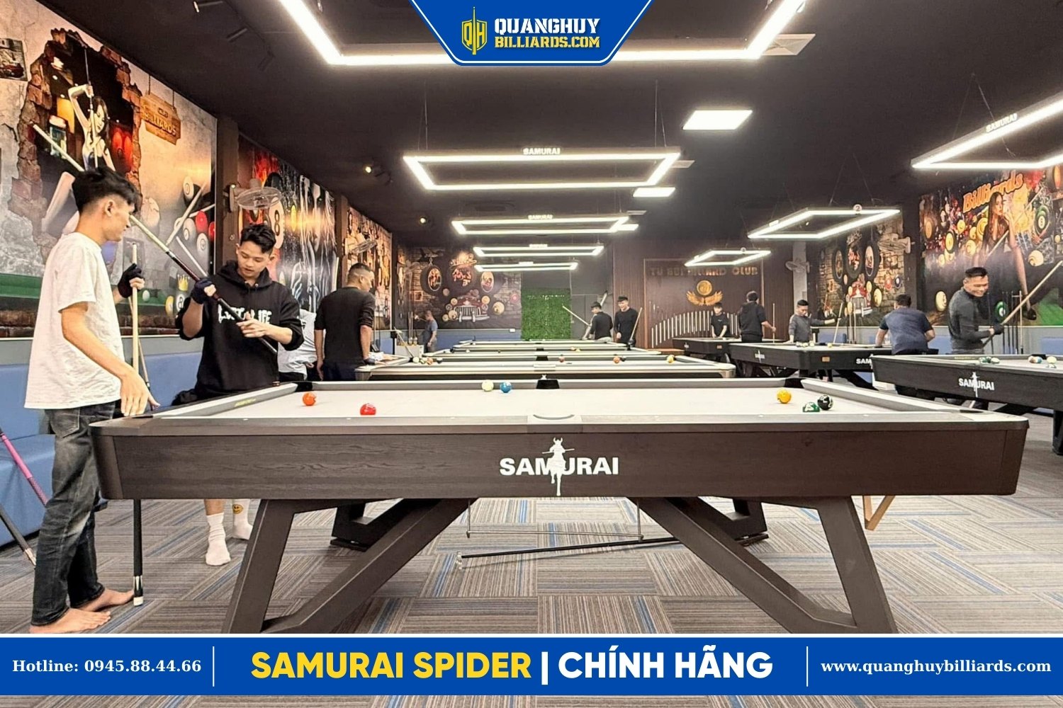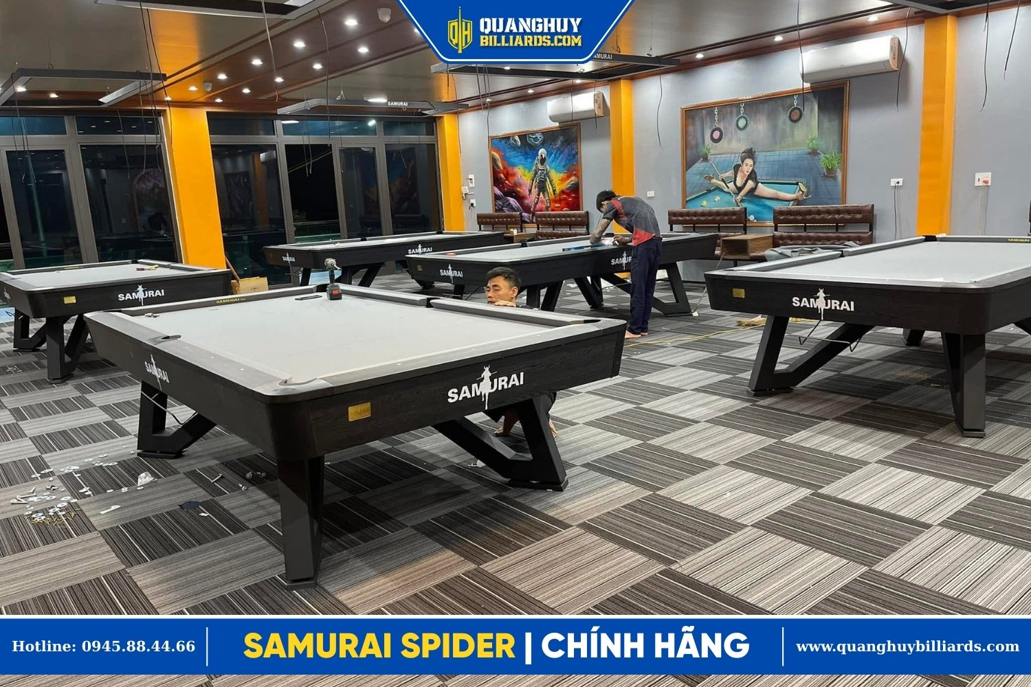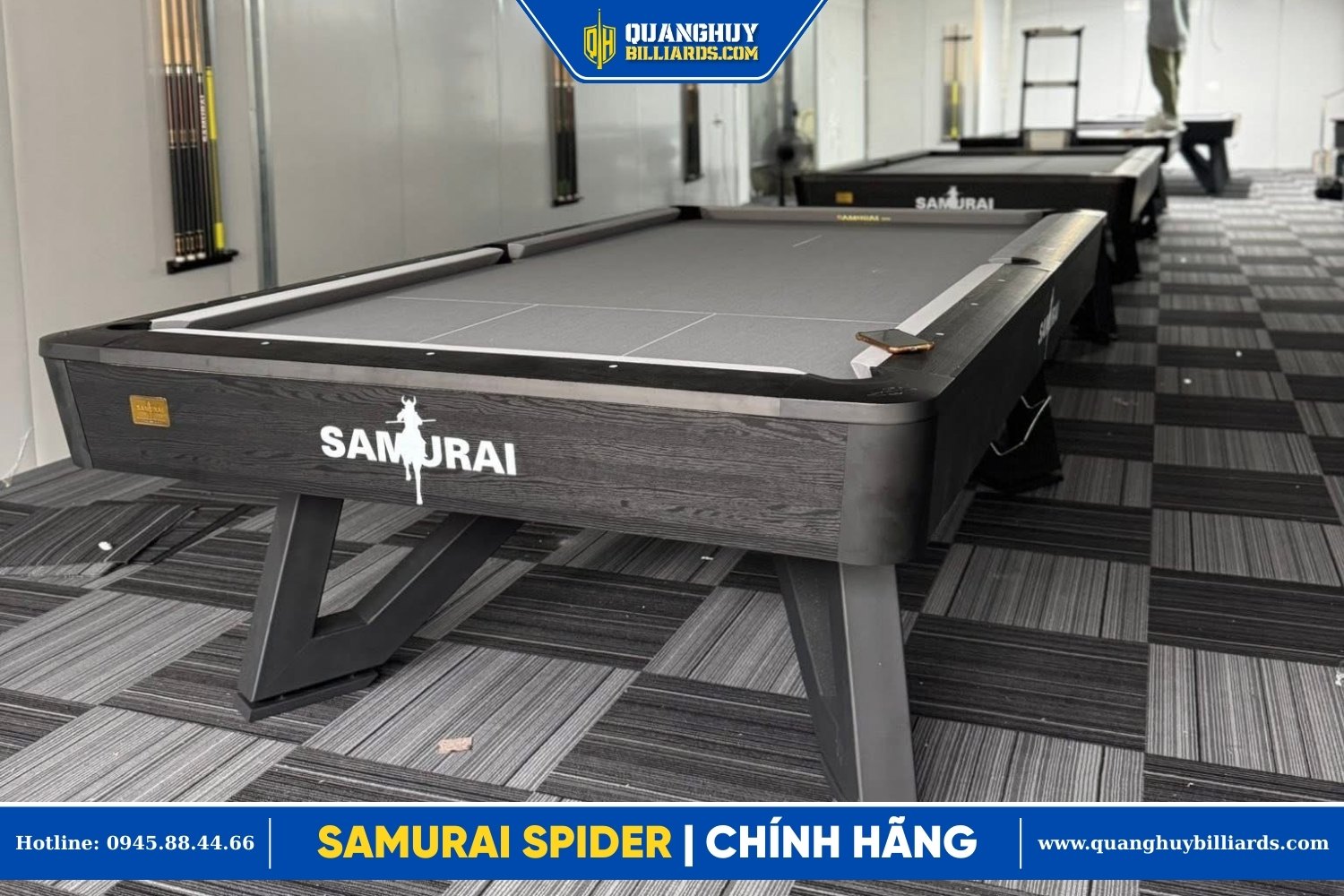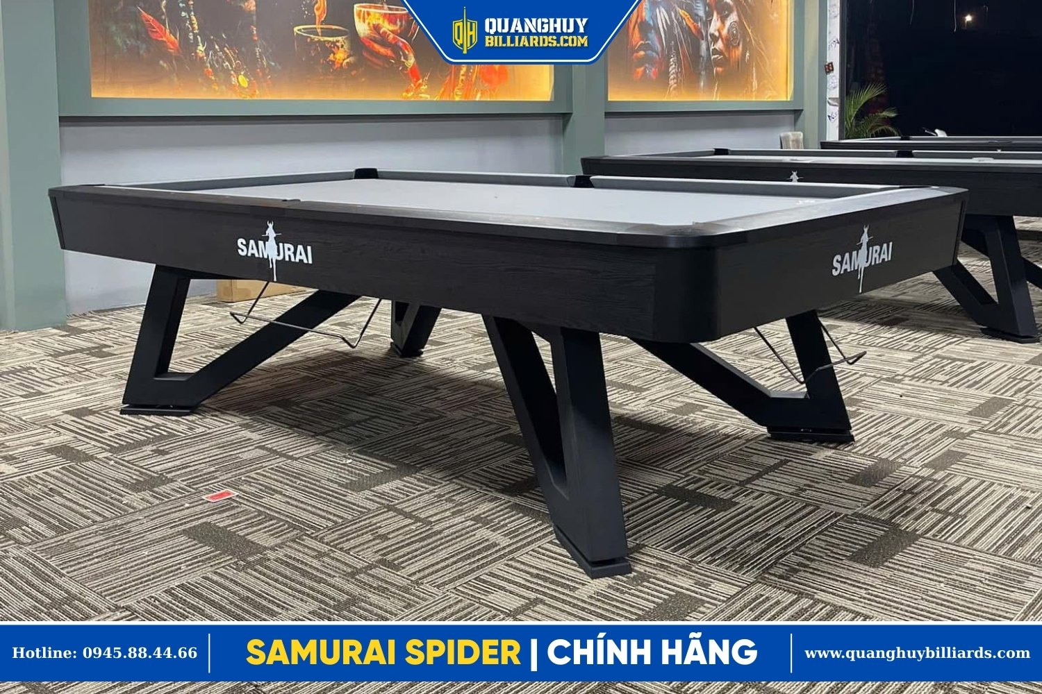 Bàn bida Samurai Spider chính hãng – Thiết kế mới độc đáo, mặt đá tự nhiên dày 2,5cm phẳng 99%, băng Premier Black. Cấu hình cao cấp chuẩn thi đấu. Xem ngay báo giá!”