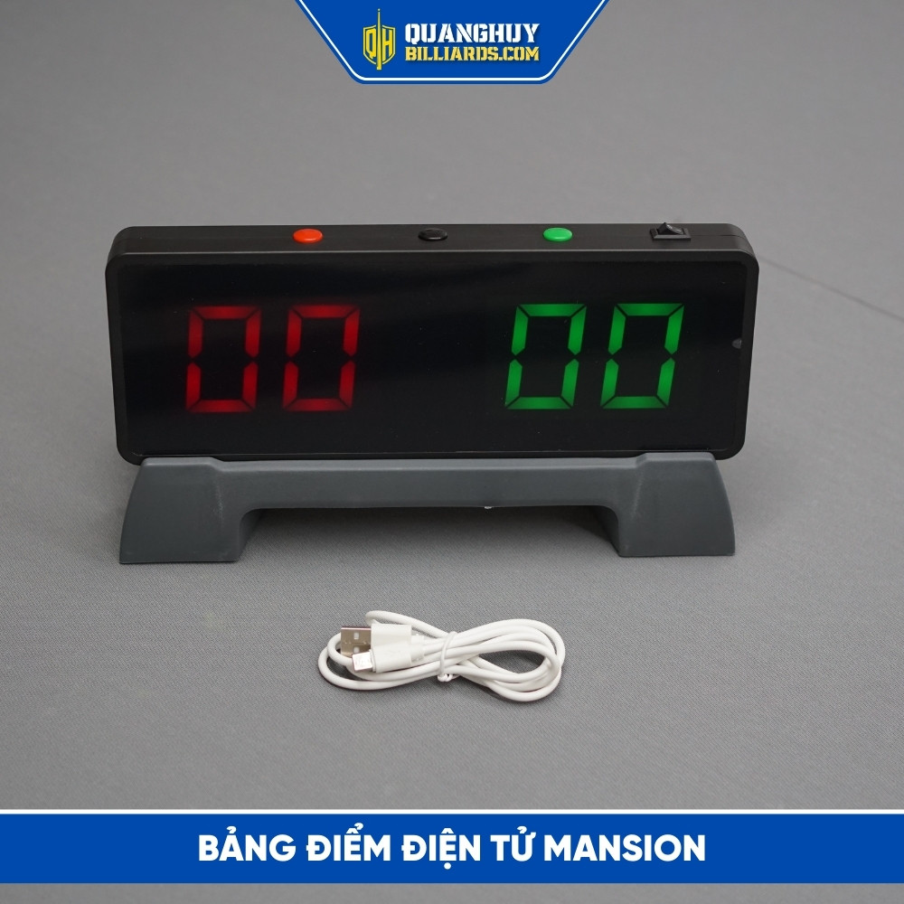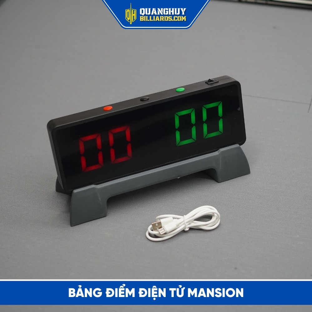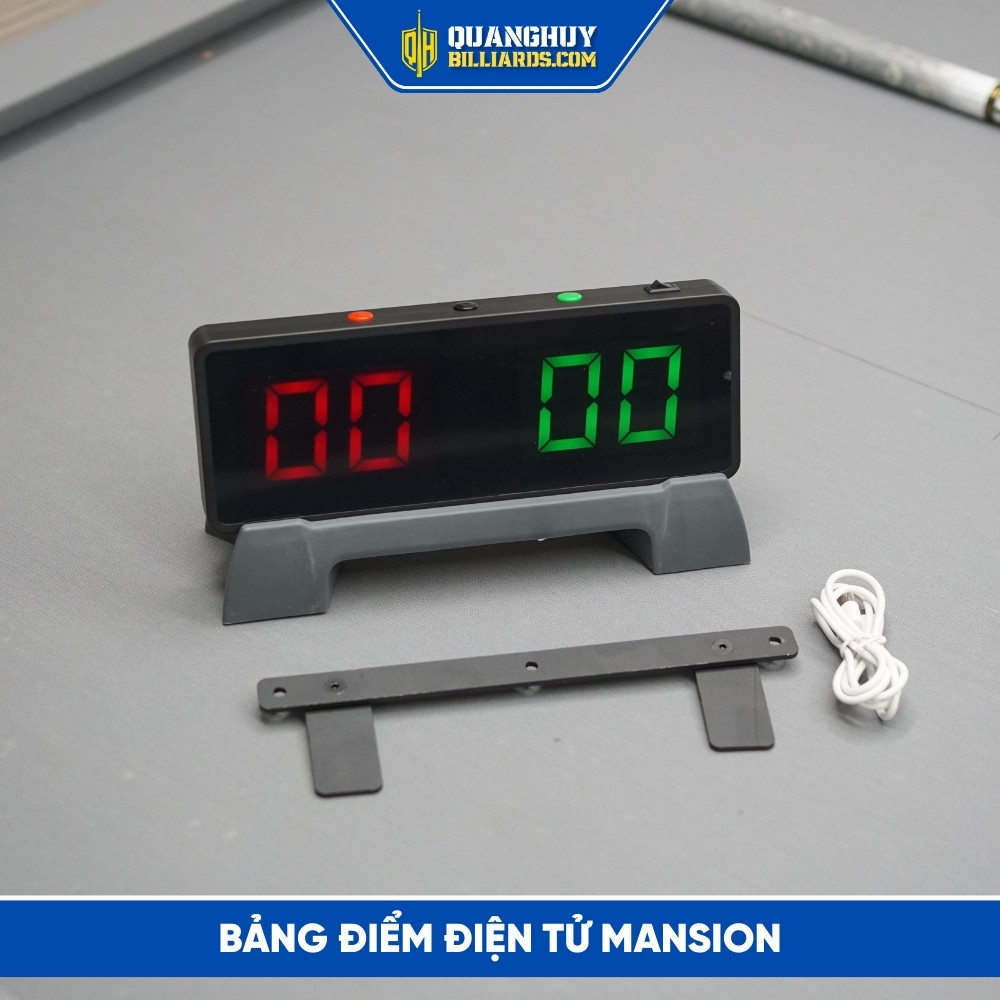 Bảng tỷ số bida điện tử Mansion là sản phẩm mới 2026 với thiết kế nhỏ gọn, sử dụng tính điểm cho 2 người chơi. Bảng điểm bida có thể sạc trong 3-4 giờ và sử dụng liên tục 72 giờ. Khách hàng cũng có thể cắm điện trực tiếp để sử dụng liên tục.